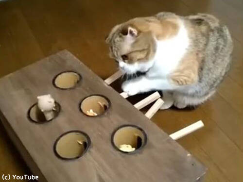 猫動画 猫がセルフもぐらたたき 猫が自分でする もぐらたたき で遊ぶと 猫知る