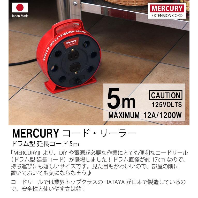 コンセント付リーラー5m マーキュリー 延長ケーブル コードリール リーラー 延長コード 電工ドラム 長い 延長 コンセント コード ケーブル 電源 固定 差し込み口 収納 接続 束ねる 途中 伸びる 配置 照明 洗車 掃除 スタジオ スピーカー ショップ カフェ 注文後の変更